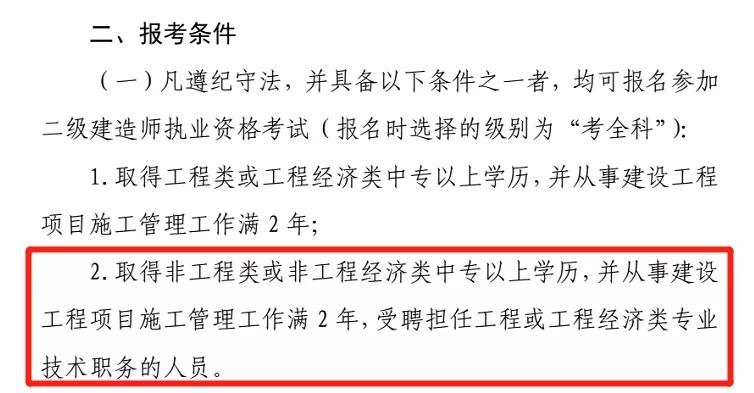 【摘 要】:一般来说,报考二建有个必备条件:工程或工程经济相关专业。 不过从2019年开始,二建逐渐放宽报考要求,有一些省份不限专业都能报考。 以下内容摘取自2021年文件,仅供参考 。 注