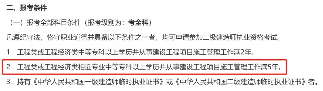 注意:2022年二建各地报考条件暂未发布,具体以官方2022年最新通知为准!