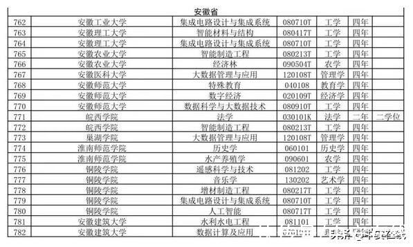 记者查询新公布的《新增备案本科专业名单》了解到,我省共17所高校的52个专业在列,且新增备案本科专业多为“人工智能”专业。其中,就包括合肥学院的集成电路设计与集成系统专业、合肥师范学院的集成电路设计与集成系统专业以及人工智能专业、合肥城市学院的人工智能专业、皖江工学院的人工智能专业。