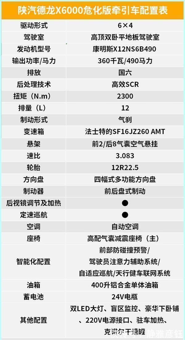 此次我们简单的介绍了一下这辆陕汽X6000危化版,为更好帮助大家了解这辆的具体性能我们在这也为大家做一个小总结。