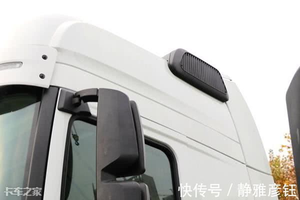 来到车身侧面能够看到,X6000危化版的侧面线条还是比较圆润,虽然上方的小帽子会影响部分车辆的风阻,不过整体来看,这样的造型还是能对燃油经济性带来一定帮助。